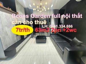 Bcons Garden Căn góc 63m2 cần cho thuê, full nội thất giá 7tr/th